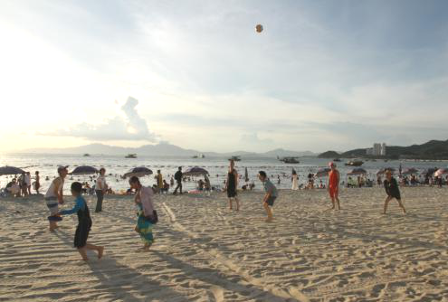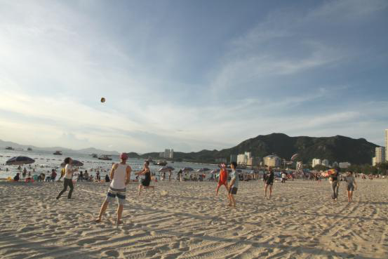 当大海和沙滩遇上了运动,没错,第三个项目就是沙滩排球啦,脚下踩着细腻的沙子,一场排球的对决开始了。