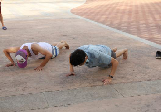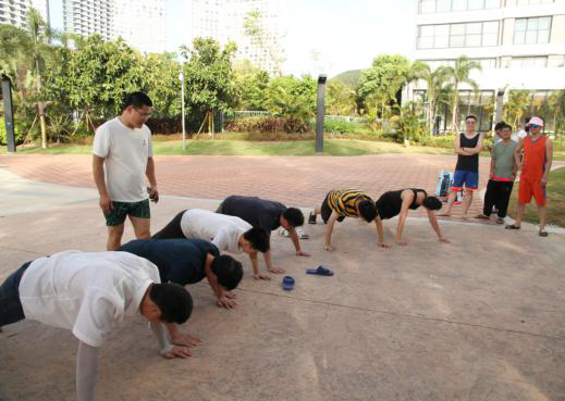 既然是比赛,输了的队伍当然会有“小惊喜”,第一和第二组输了之后被“奖励”俯卧撑。