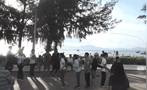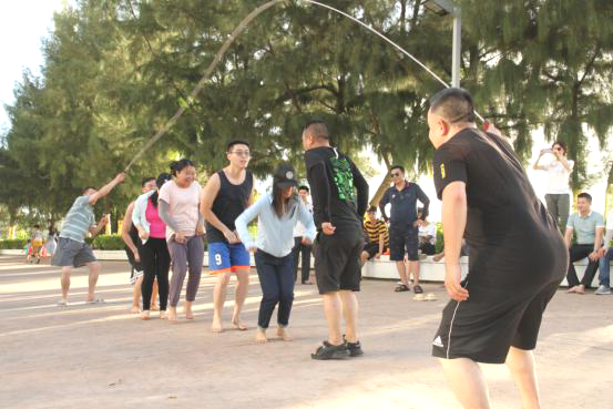 在集体跳大绳中,总共分为三小组,按小组进行跳绳比赛,这很考验大家的反应及体力。