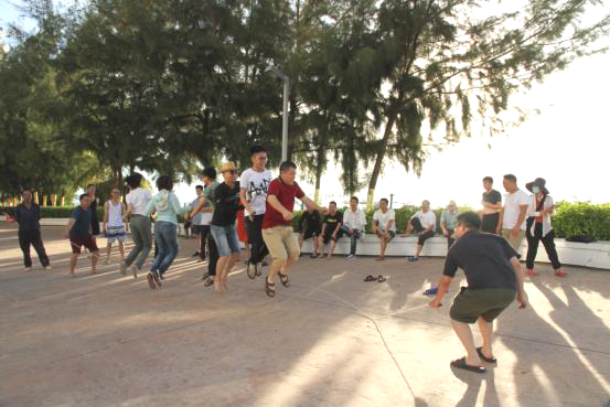 有组员说:这让她一下子回到童年,和小伙伴下课后一起跳绳,很累,但很开心。