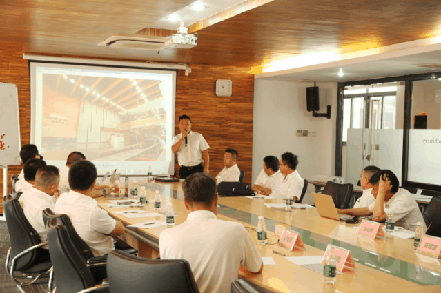 车间的介绍完毕后,所有成员回到会议室,继续对速龙机知识要点进行培训。学员们都积极提出问题,研发技术中心总工程师白锋耐心讲答。