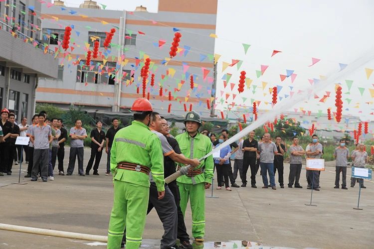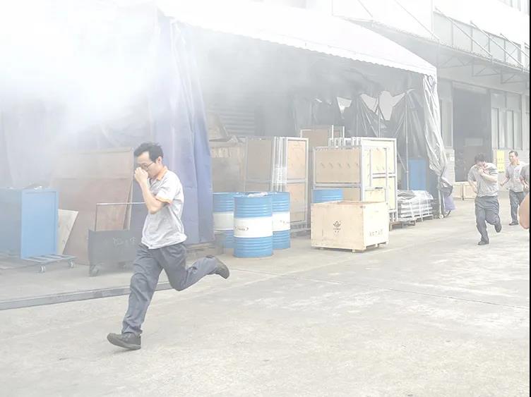 本次演练是模拟工厂某处着火,公司紧急启动应急预案,在各级员工的通力协作下,警戒疏散组维持现场秩序、设置警戒线、安排疏散人员;灭火组对火点进行紧急灭火;应急抢险组负责全面检查与维护;医疗救护组随时待命。