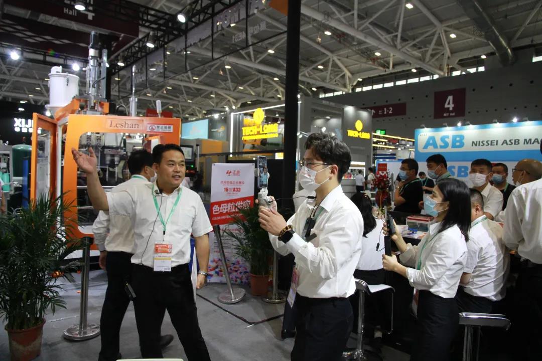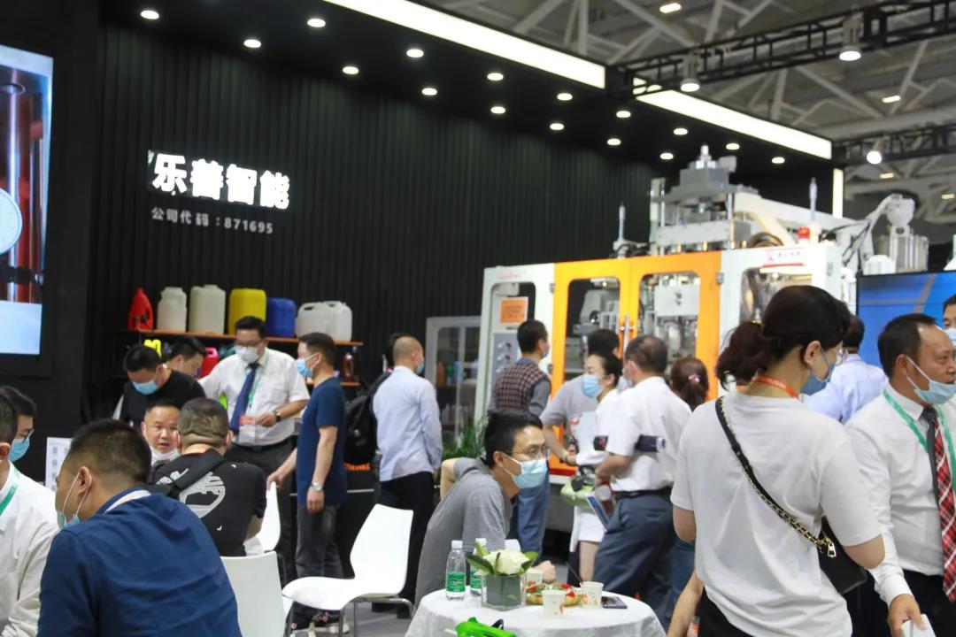 乐善智能以“第二代速龙机”与“小旋风全电机”两个主题。第二代速龙机展出3升洗衣液制品,生产周期22秒,23500只/天,新型摆臂式伺服电机机械手取瓶机构,速龙锁模架长寿命通过500万次测试,独具匠心的机头设计和稳定高效的现场生产表现,展现了近几年在吹塑事业的深耕成果,赢得了众多来访者的好评与肯定。