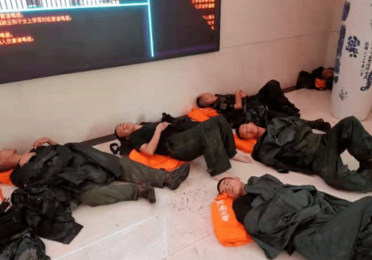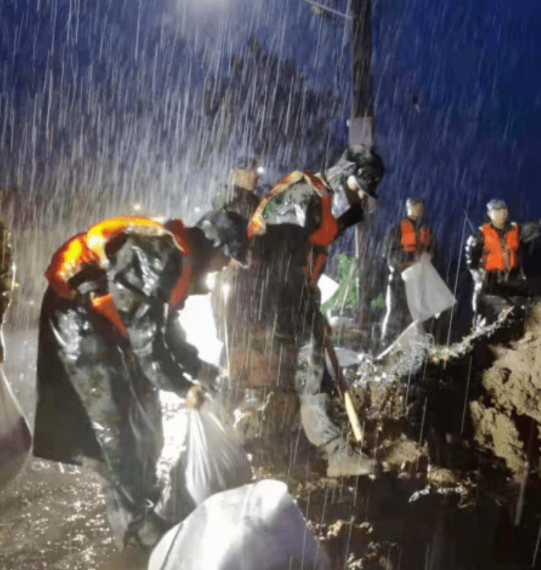 因为条件艰苦,累了也只能席地而睡。同样的逆行者还有武警、消防、警察,他们都奋斗在抗洪的第一线。
