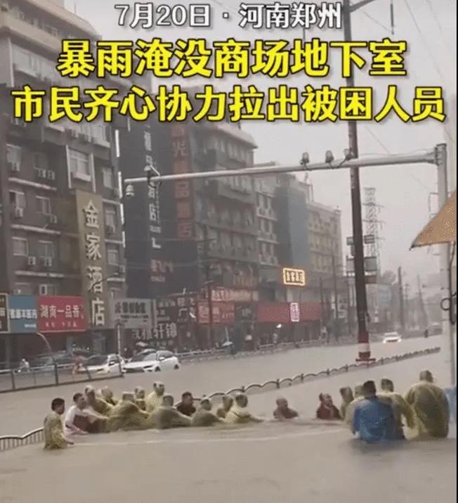 商场地下室有人被困,市民们齐心协力,把被困人员拉出来。
