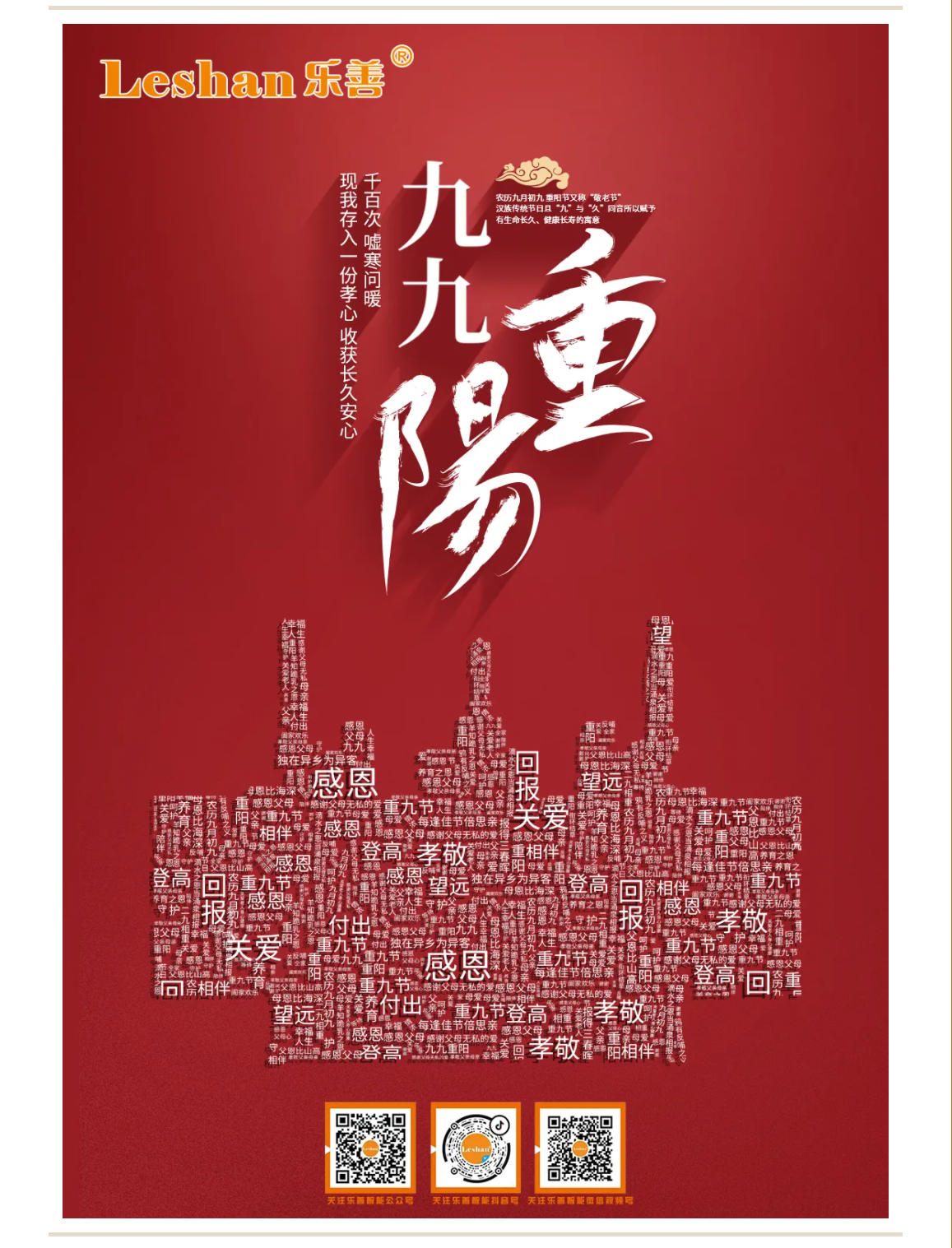 插一支山茱萸,身体健康心情愉;吃一块重阳糕,事业辉煌步步高;喝一杯菊花酒,生活甜美永恒久。重阳节到了,乐善智能祝各位重阳安康!