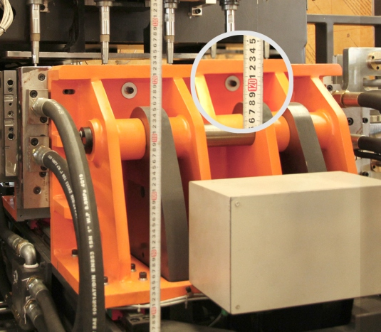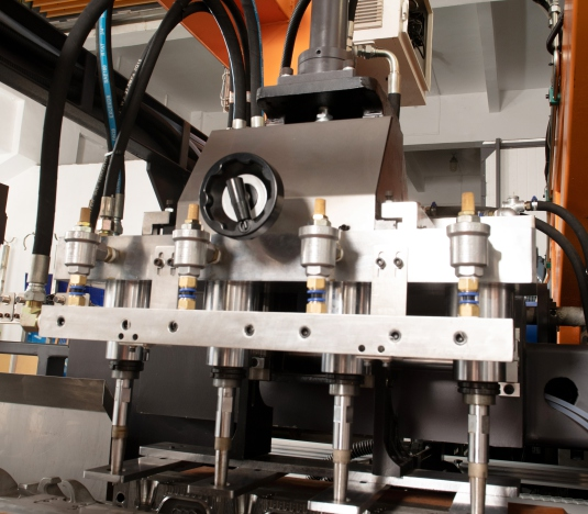 采用全新的大流量无管接驳插笔杆。借助这项新技术,插笔系统在生产塑料瓶时线性导轨导向摩擦力更小、导向精度更高。