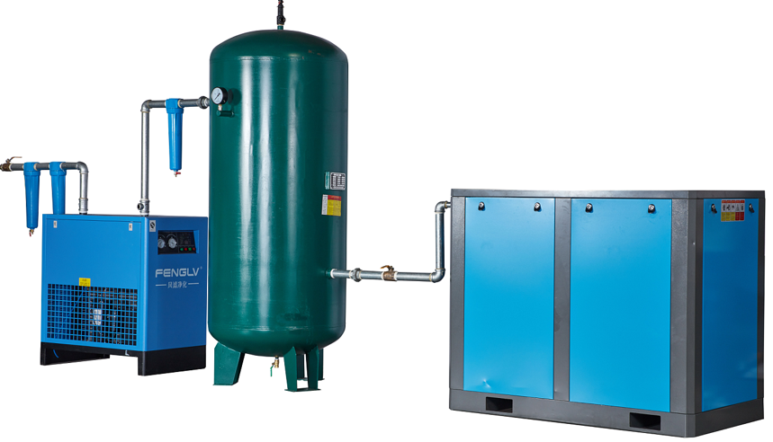 主要作用:给吹瓶机提供压缩空气,为吹瓶和机器相关气动动力支持