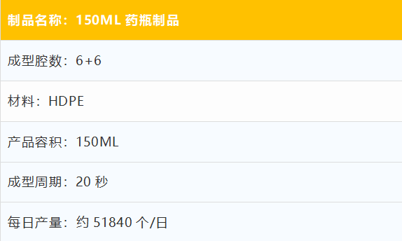 2.本机型用于制作150ML药瓶,生产周期约为20秒,产量约为:51840个/日。