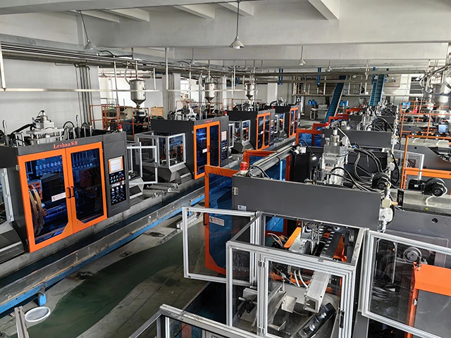 该现场采用了乐善智能的中空挤出吹瓶机型号E70DBD,该设备采用先进的数控技术,具有高效、稳定和耐用的特点。它主要用于生产100-500毫升HDPE饮料瓶。