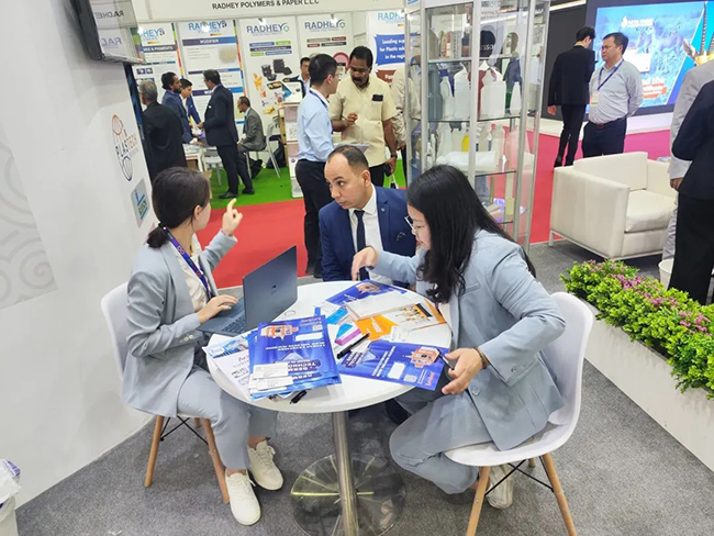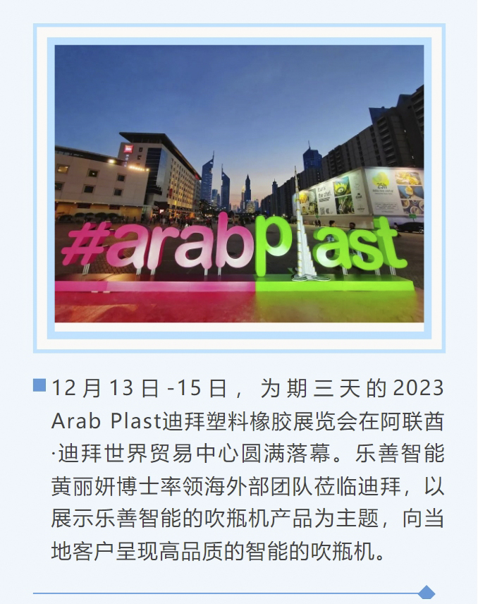 中东地区是全球最大的塑料原料加工基地,占据全球市场的80%。塑料工业已成为该地区增长最快的产业。Arab Plast 2023展会吸引了来自欧洲、亚洲和非洲的观众的到访。他们对乐善智能的技术和产品表现出浓厚兴趣,特别赞赏中空挤出吹塑机的卓越性能和智能操作。他们希望与乐善智能深入合作,加速推动中东地区的产业发展。