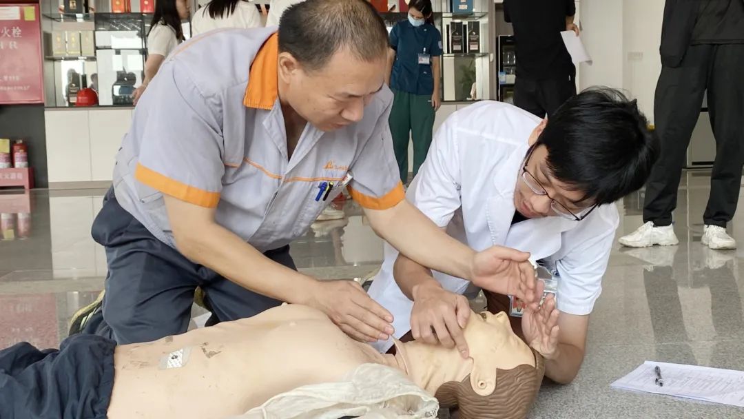 在理论知识讲解之后,医护人员重点介绍了心肺复苏(CPR)的重要性和操作要点,并通过现场示范的方式,让员工们对这一关键的急救技能有了直观的认识。为了让理论知识得到实践的巩固,员工们在医护人员的指导下,亲自进行了心肺复苏的实操练习。