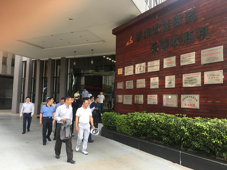 随后,各位领导在郭董的陪同下走进乐善现代化智能制造车间,参观吹瓶机生产流程,听取讲解智能吹瓶设备的生产情况。并对生产流程质量控制体系进行了详细讲解。