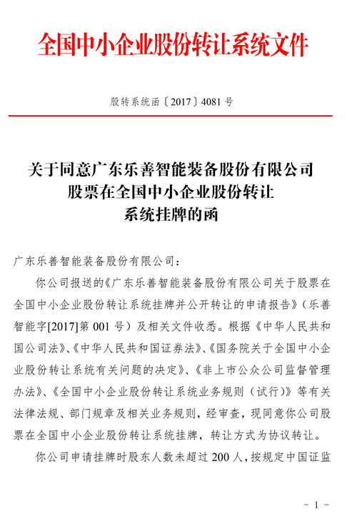 乐善成功挂牌新三板啦!