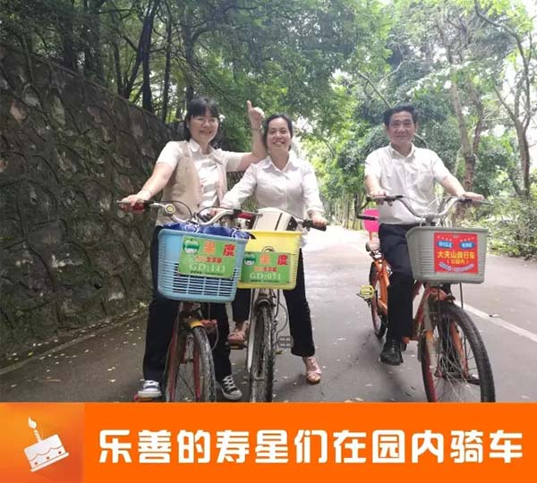 接下来就是自由活动时间,寿星们三五结队,或租单车游园,或漫步观赏,或泛舟小湖……在忙碌的生活、工作中,最美好的莫过于偷得浮生半日闲,所以大家都尽情地玩耍。呼吸新鲜的空气,观赏赏心悦目的景色。