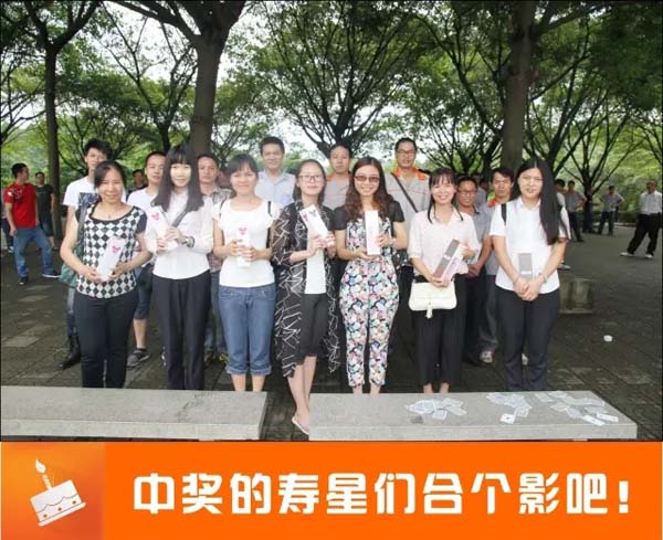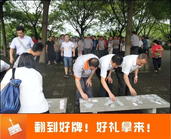 下午一点钟,寿星们准时从公司乘坐大巴出发。工作人员在车上给大家讲解了注意事项。到达大夫山后,我们先组织了集体游戏——欢乐翻扑克,全体人员分成八个小组,每位队员都按顺序跑过去翻牌,游戏虽然简单,却充满了欢声笑语!“全部找到了,耶!”最多美女的第六小组胜利了,然后我们进行了简单的颁奖仪式。