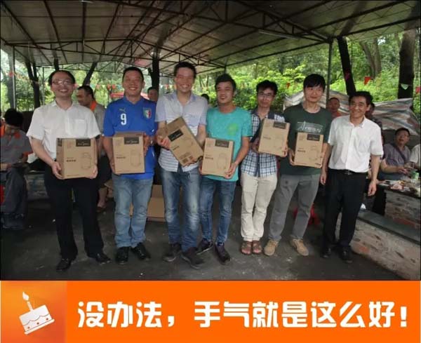16时,我们去到大夫山附近的烧烤场,进行了自助餐烧烤,各种肉类、蔬菜、水果、饮料一应俱全,同事们都互相碰杯,边聊天边烧烤,烤熟了就互相分享,一片欢乐和谐的气氛。大家都吃得差不多的时候,最受欢迎和期待的抽奖环节开始了。本次二奖设6名,由高世凡、王胜军、范俊伟、李文进、岑炬兵、吴伟龙抱得礼品归,大奖设4名,幸运儿分别是刘芳、林自俊、罗镇谦、韦明幸。