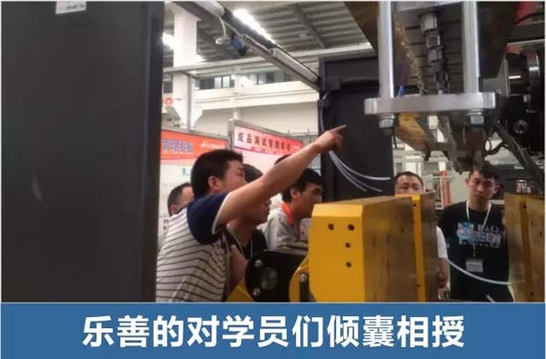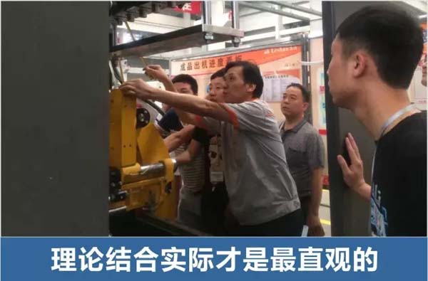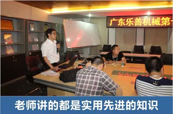 培训内容包括:挤出系统结构及控制系统理论、挤出系统安装,挤出系统的电气控制线路、液压系统控制原理及电气控制理论、液压系统现场安装,液压系统的电气控制线路、气动系统安装及控制系统理论、气动系统现场安装,气动系统的电气控制线路、机械系统结构及原理、机械系统的安装及调整、空载调整、负载调整、吹塑工艺、设备维修、设备、模具保养等;乐善的老师也多用各式案例深入讲解乐善吹瓶机的特点及解决方案。课堂上学员们互动热烈,以自身工作中遇到的案例进行了解剖分析,反馈工作中存在的问题,让老师和学员们一同探讨,明确了今后的日常保养和改进方法。