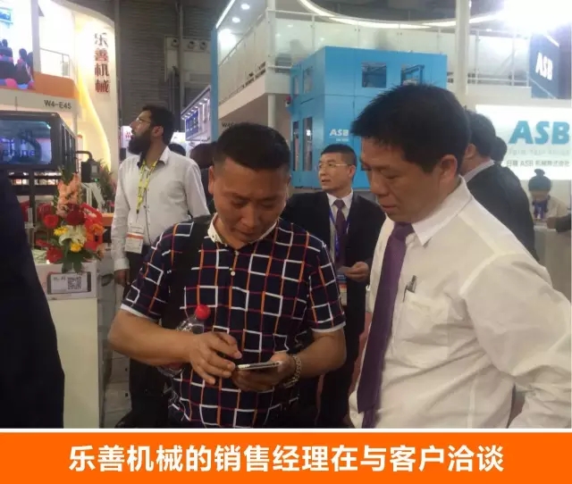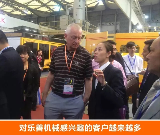 “工业4.0智能吹塑工厂”通过现场实机运行,向观众展示了电动吹瓶机高速化的生产过程,该机各个电力驱动装置灵活自由度高,简化了不少人工流程,大大地提高了生产过程中的工作效率,整个展示过程无论是在提升生产效率和降低生产成本,还是提升产品精度和生产安全方面都有着巨大进步,成为了智能制造一个闪光的亮点。“工业4.0智能吹塑工厂”在本次展会的首次亮相吸引了众多观众的驻足参观、咨询和洽谈,不少客户表达了愿与乐善机械合作的意向。据不完全统计,展会期间有130个客户到达乐善展位参观,其中旧客户75个,新客户55个。有70%的客户对我们的电动机表示有兴趣,有七个客户现场拍定要定购乐善的电动吹瓶机。