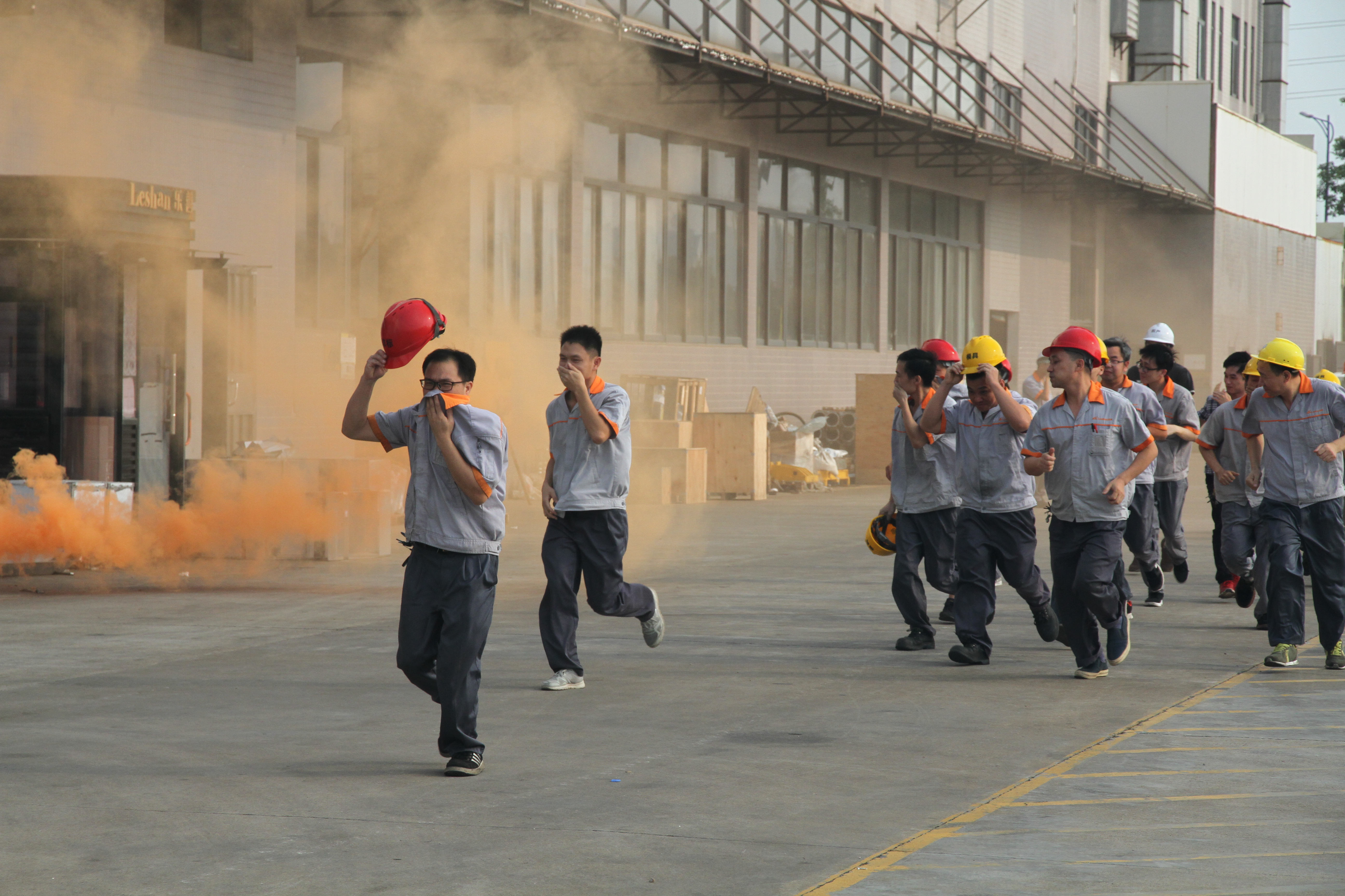 伴随着紧急警报声响起,演练开始。此时着火点烟雾四漫,浓烟滚滚。各个部门迅速按消防预案的疏散线路有序的小步快走,按照最近的路线迅速且有序下楼,并前往篮球场集合。途中,员工们冷静、有序、快速撤离。全公司从听到警报到安全集合约用了3分56秒的时间,途中无发生任何意外。