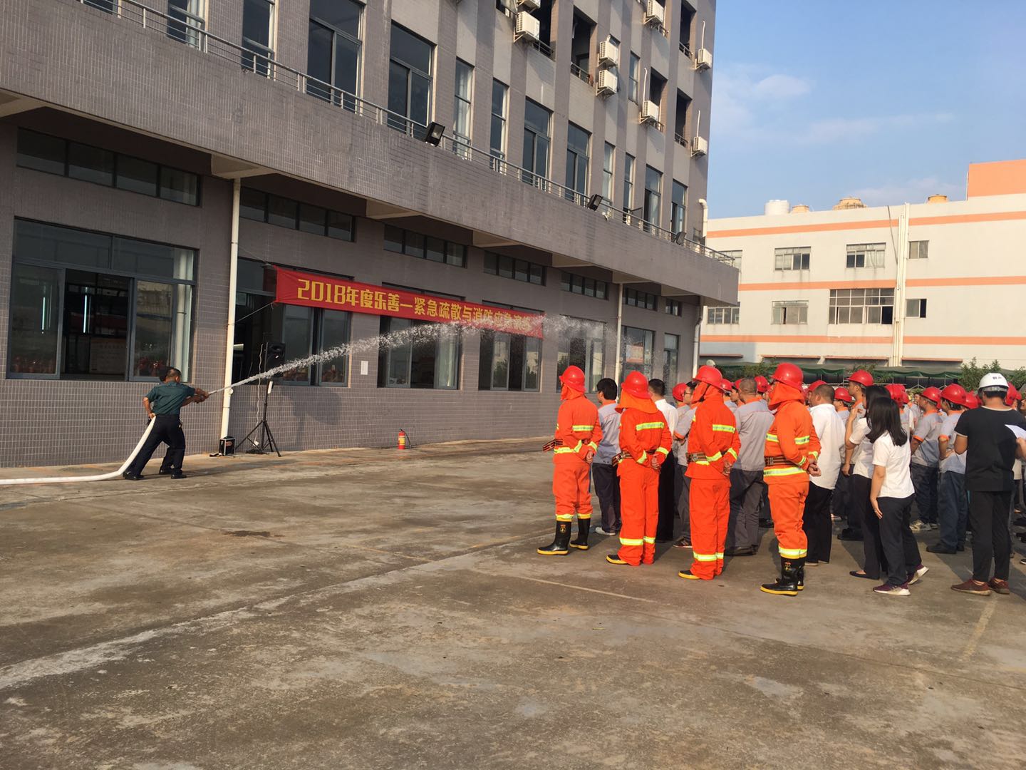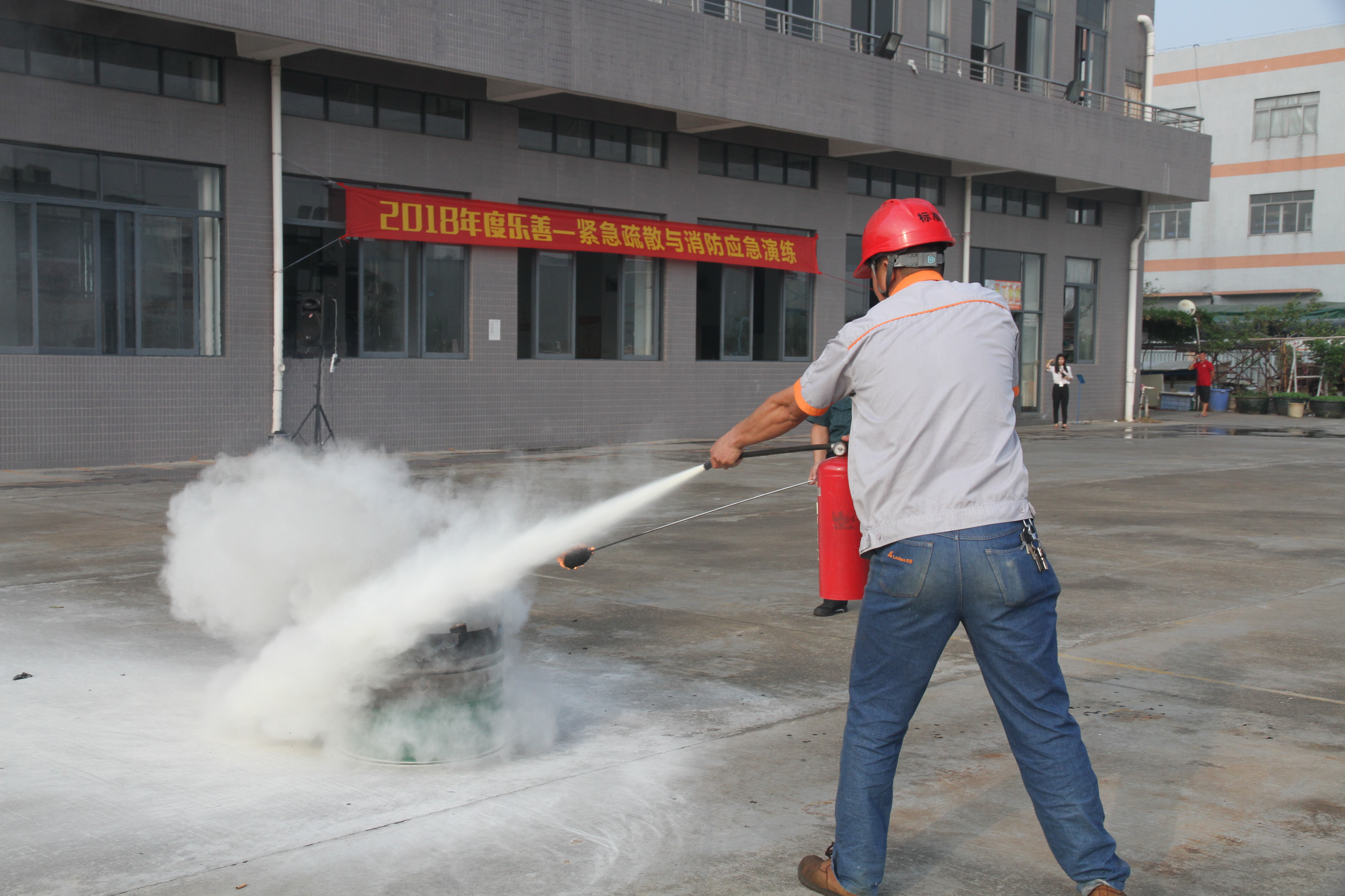 撤离到安全地带后,各生产线及职能部门在人事部的协调下,迅速清点人数,并按照指示牌站好队伍。人事部迅速统计人员情况并向总指挥——乐善智能安全生产主要负责人罗彬先生报告撤离情况。随后,罗彬先生对本次撤离情况及演练效果作出总结,并向超然物业的安全主任发出指令,进行下一步的灭火器材使用表演及教学。