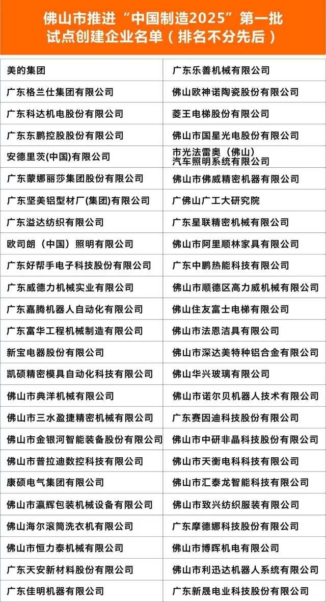 佛山市经济和信息化局公布了佛山市推进“中国制造2025”第一批试点示范创...