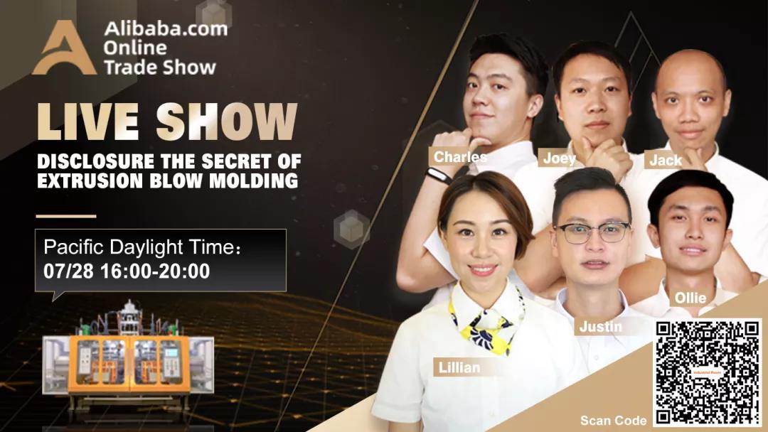 7月28日乐善智能首次参加阿里直播向全球揭秘乐善的挤压吹塑工艺