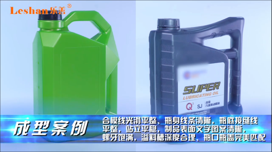 合模线光滑平整、瓶身线条清晰,瓶底接缝线平整,站立平稳,制品表面文字图案清晰,螺牙饱满,溢料槽深度合理、瓶口瓶盖完美匹配。
