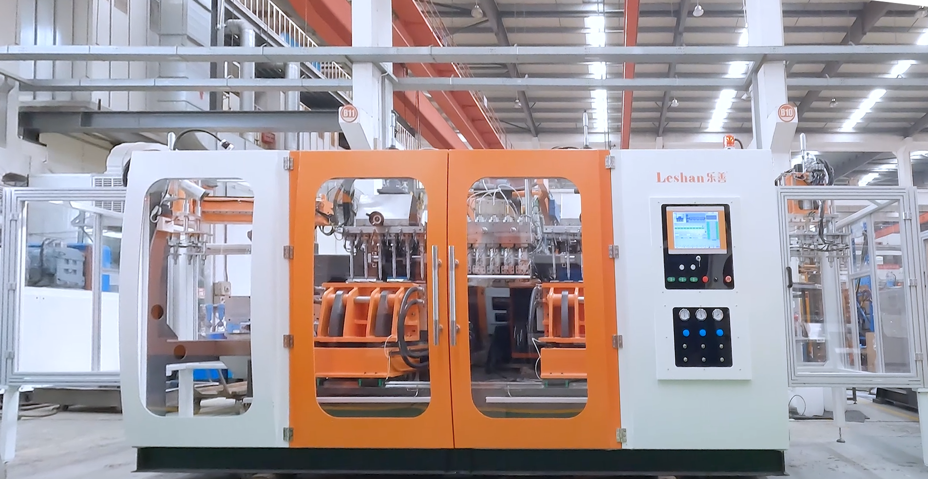 乐善速龙系列吹瓶机采用优良的加工工艺保证设备系统化,通过高效生产能力和完整品质控制,以及完善的售后服务体系,给予客户优质生产效率体验,使产品广泛应用于目前我们速龙机的定位领域于食品类、日化洗涤类、化工桶等。