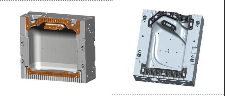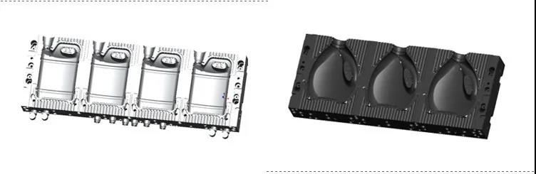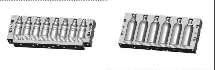 此类模具模腔材料一般为美铝7075材质,瓶底则采用钢材,模具重量轻、耐磨性良好,成型周期短,冷却好,产量高。